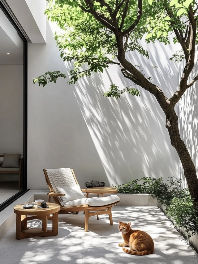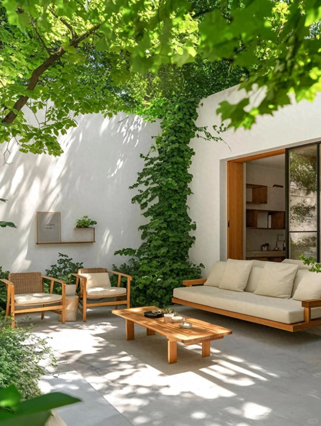 除了花草,你还可以在小院里布置一些简约而富有格调的家具。